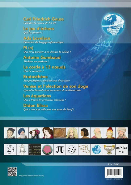 Cette BD facile à lire fascine par les histoires des découvertes, des trouvailles géniales de leurs auteurs. Les algorithmes, la découverte du nombre Pi, celle de la corde à 13 noeuds, le calcul du tour de la terre, l'invention du jeu d'échecs, la résolution des équations... Dix histoires toutes plus extraordinaires les unes que les autres se côtoient pour le plaisir des plus jeunes comme des plus grands.