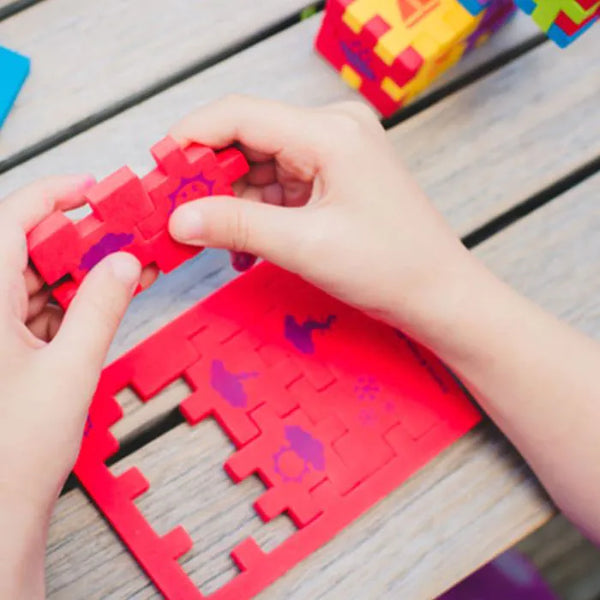 Happy Cube© Junior est la version la plus facile de la famille Happy Cube, conçue pour les plus jeunes. Les pièces du puzzle portent des symboles qui facilitent leur reconnaissance et favorisent le développent du langage chez les petits. Chacun des six puzzles possède sa forme et sa couleur propres et permet de réaliser différents puzzles.